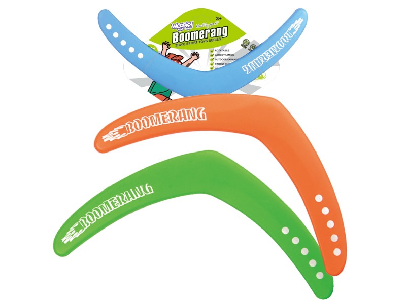 - Žaislas yra trijų spalvų (spalva parenkama atsitiktiniu būdu); kaina nurodyta už vieną bumerango vienetą.