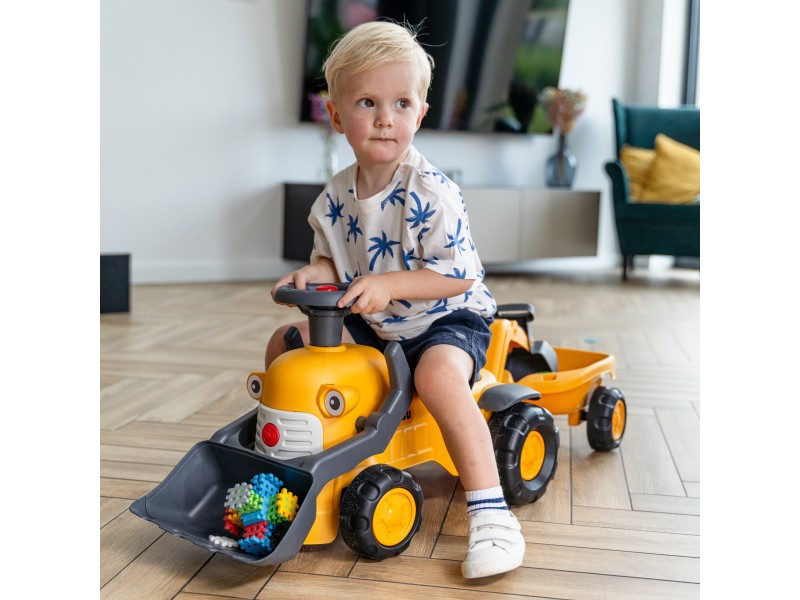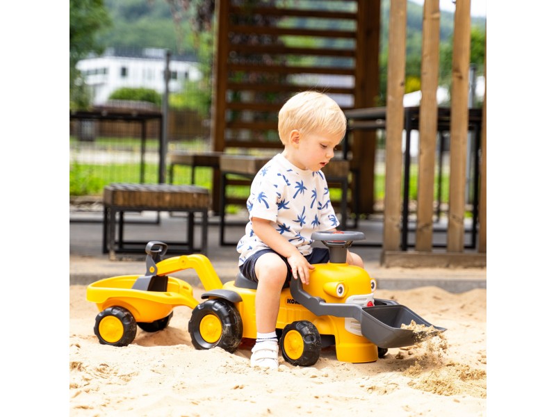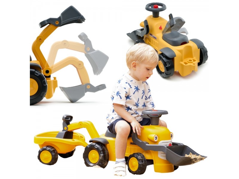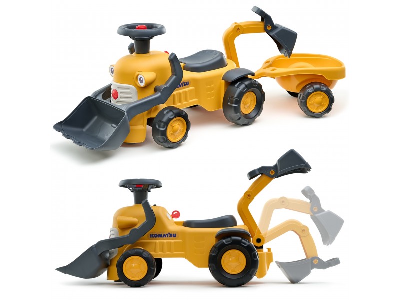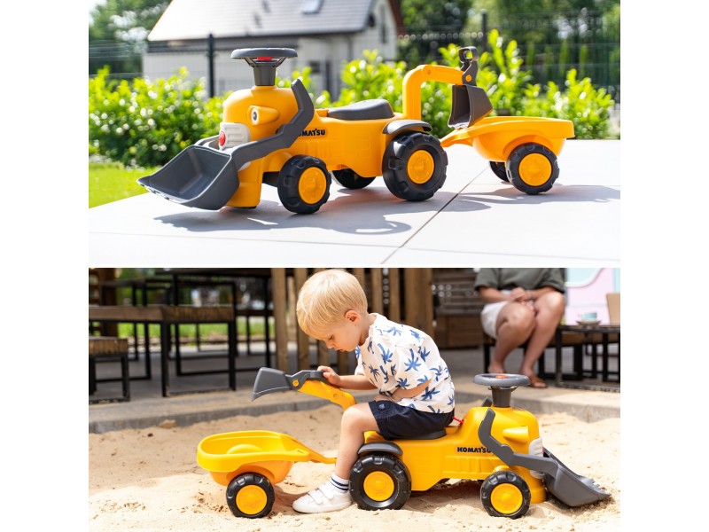 Mažasis Komatsu traktorius iš Falk prekės ženklo yra tobula dovana vaikams nuo 12 mėnesių amžiaus. Ši žavinga vintažinio stiliaus paspiriama mašinėlė yra kupina staigmenų ir funkcijų, kurios sužavės kiekvieną mažylį. Rinkinys yra itin universalus – jis turi priekinį kaušą, galinį ekskavatorių bei nuimamą priekabą, todėl tai puikus palydovas žaidimams sode, paplūdimyje ar smėlio dėžėje. Transporto priemonė ne tik linksmina, bet ir skatina vaiko vystymąsi dėka pasukamo vairo su garso signalu bei mažos spragsinčios užvedimo spynelės, kurios stimuliuoja klausą ir skatina sąveiką. Produktas yra duoklė 75 metų prekės ženklo patirčiai ir žvilgsnis į ateitį – jis pagamintas visiškai Prancūzijoje ir sudarytas iš mažiausiai 90 % perdirbto plastiko. Tai puikus būdas supažindinti vaiką su ekologiniu sąmoningumu, tuo pačiu užtikrinant saugų ir kūrybišką žaidimą.
