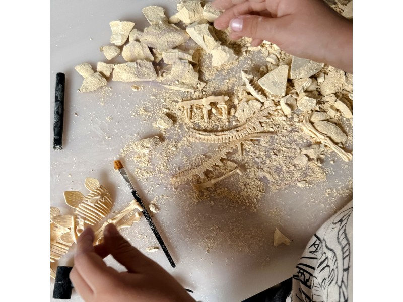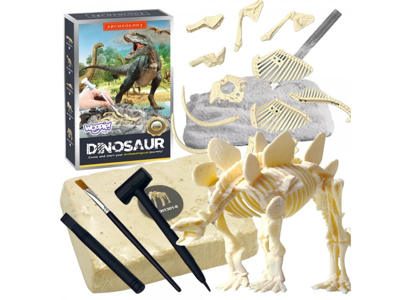 „Woopie“ prekės ženklo archeologinių kasinėjimų rinkinys yra fantastiška dovana smalsiems vaikams, kurie nori pasijusti tikrais paleontologais. Šis edukacinis žaidimas leidžia vaikui savarankiškai, naudojant specialius įrankius, „iškasti“ dinozauro fosilijas iš gipso luitelio ir surinkti savo Stegozauro skeletą. Tai ne tik įtraukianti pramoga, bet ir puiki mokslo bei istorijos pamoka namuose, skatinanti domėjimąsi priešistoriniu pasauliu.