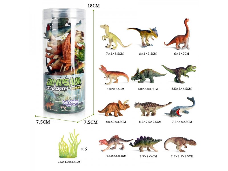 WOOPIE prekės ženklo figūrėlių rinkinys yra idealus pasirinkimas kiekvienam gyvūnų ir priešistorės gerbėjui. Rinkinyje yra 12 dinozaurų bei 6 papildomi elementai žaidimo aplinkai kurti. Realistiškai atrodančios figūrėlės puikiai papildys mažojo kolekcionieriaus rinkinius, atliks edukacinę funkciją supažindinant vaiką su senovės pasauliu bei užtikrins smagią pramogą. Žaisdamas mažylis lavins savo vaizduotę ir kūrybiškumą, kurdamas įvairius nuotykių scenarijus.