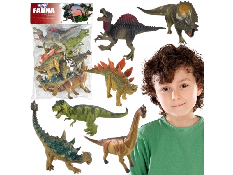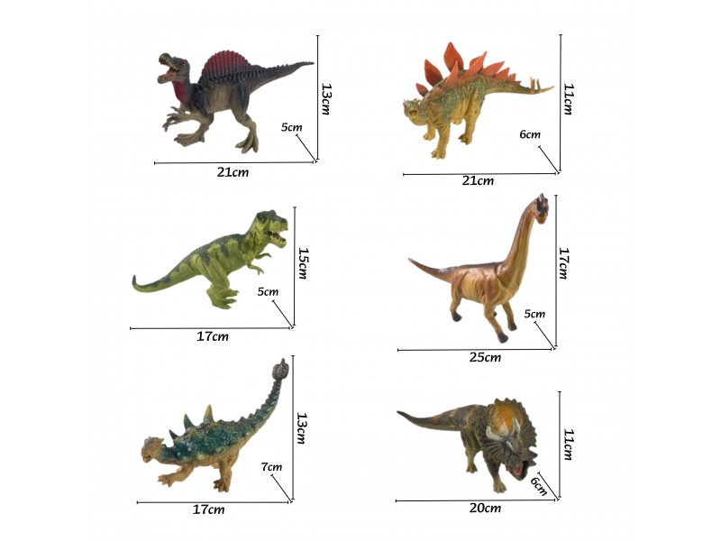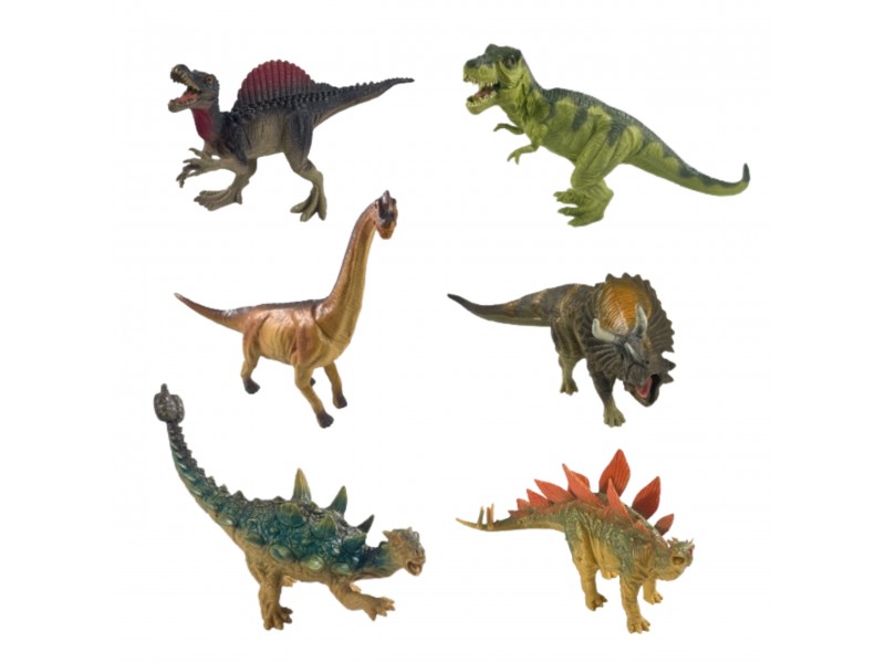 - Rinkinį sudaro 6 skirtingų rūšių dinozaurų figūrėlės.