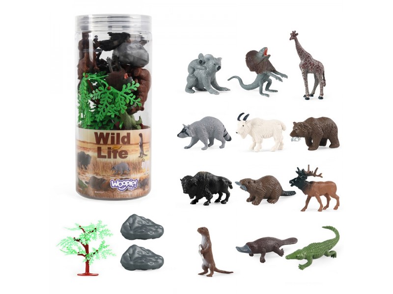 WOOPIE prekės ženklo figūrėlių rinkinys yra idealus pasirinkimas kiekvienam gyvūnų gerbėjui. Rinkinyje yra 12 laukinių gyvūnų, taip pat medis ir 2 uolos. Realistiškai atrodančios figūrėlės ne tik papildys mažojo kolekcionieriaus rinkinius, bet ir atliks edukacinę funkciją. Tai puiki priemonė, kuri užtikrins smagią pramogą, padedančią mažyliui lavinti savo vaizduotę bei kūrybiškumą.