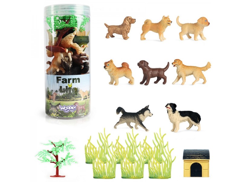 WOOPIE prekės ženklo figūrėlių rinkinys yra idealus pasirinkimas kiekvienam gyvūnų mylėtojui. Rinkinyje yra 6 šunys, medis, 6 augalai ir šuns būda. Realistiškai atrodančios figūrėlės papildys mažojo kolekcininko rinkinius, atliks lavinamąją funkciją ir užtikrins smagią pramogą, kurios metu mažylis lavins savo vaizduotę bei kūrybiškumą.