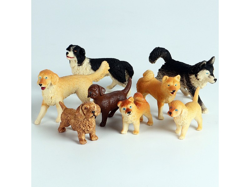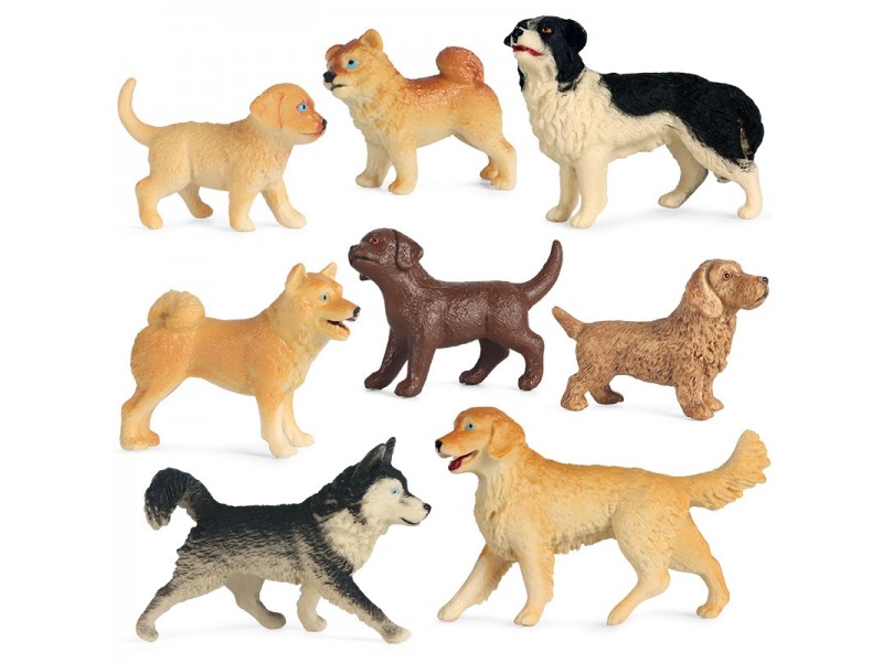 - Rinkinyje yra įvairių šunų figūrėlės.
