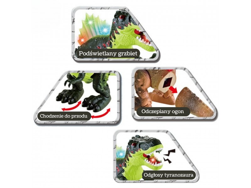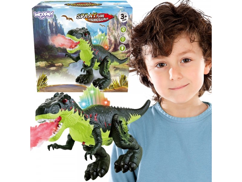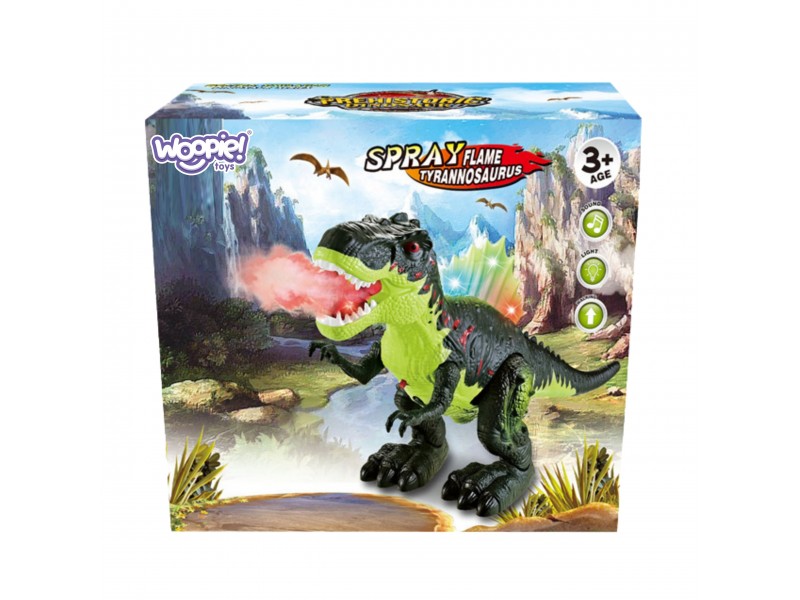 Įspūdingas interaktyvus Woopie dinozauras T-Rex su purškimo funkcija, kuri imituoja ugnies liepsną. Šis nuostabus žaislas suteikia nepamirštamų įspūdžių dėl gebėjimo savarankiškai vaikščioti į priekį, judančio žandikaulio, šviečiančios nugaros ir autentiškų riaumojimo garsų. Šis dinozauras yra puikus pasiūlymas mažiesiems, norintiems patirti priešistorinius nuotykius tiesiog savo namuose.