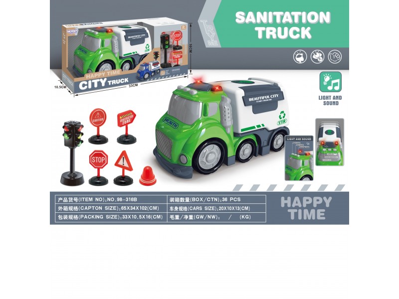 „City Truck“ serijos šiukšliavežė – tai idealus žaislas kiekvienam mažajam automobilių ir miesto specialiųjų transporto priemonių gerbėjui. Rinkinį sudaro tikroviškai atkurta šiukšliavežė, pagaminta iš patvaraus plastiko, su šviesos ir garso efektais, kurie aktyvuojami paspaudus mygtuką ant transporto priemonės stogo. Žaislas komplektuojamas su papildomais priedais, tokiais kaip šviesoforas, kelio ženklai ir kūgis, kurie paįvairina žaidimą.