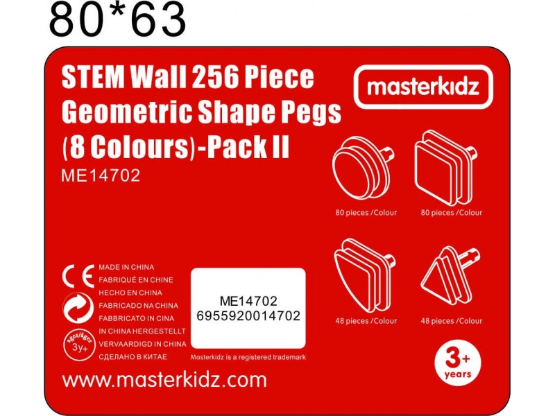 Išlaisvinkite vaiko kūrybiškumą su šiuo nuostabiu 256 spalvotų kaiščių rinkiniu, skirtu Masterkidz STEM lentoms. Įvairiaspalviai, skirtingų geometrinių formų plastikiniai kaišteliai leis kurti fantastiškus, pasakiškus raštus ir paveikslus. Tai vienas populiariausių priedų, papildančių Masterkidz kūrybines lentas ir suteikiančių neribotas galimybes meninei saviraiškai.