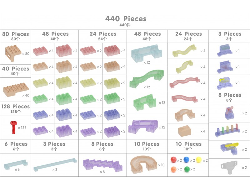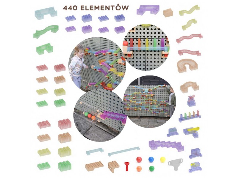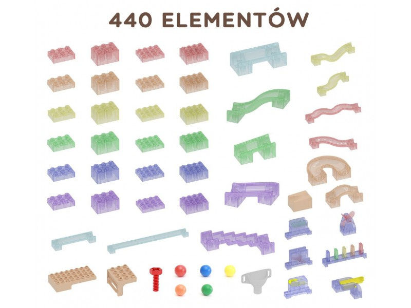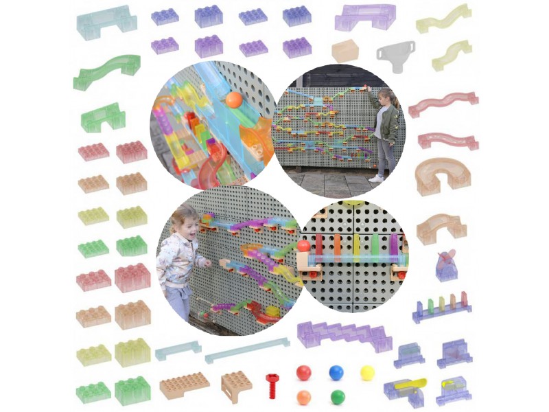 - Tai nepaprastai įtraukiantis kamuoliukų trasos konstruktorius, leidžiantis vaikams statyti įvairiausius takelius ir labirintus, naudojant kaladėles, krypties keitiklius ir kitus judesio mechanizmus.