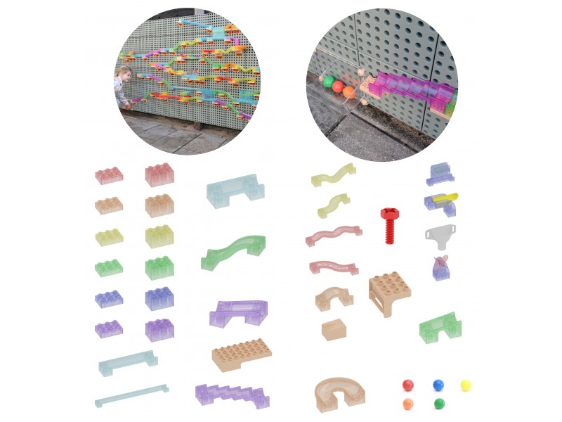 - Tai išskirtinis žaislas, leidžiantis vaikams konstruoti įvairiausius kamuoliukų takelius ir trasas, pasitelkiant kubelius, krypties keitiklius bei kitus judesio mechanizmus.