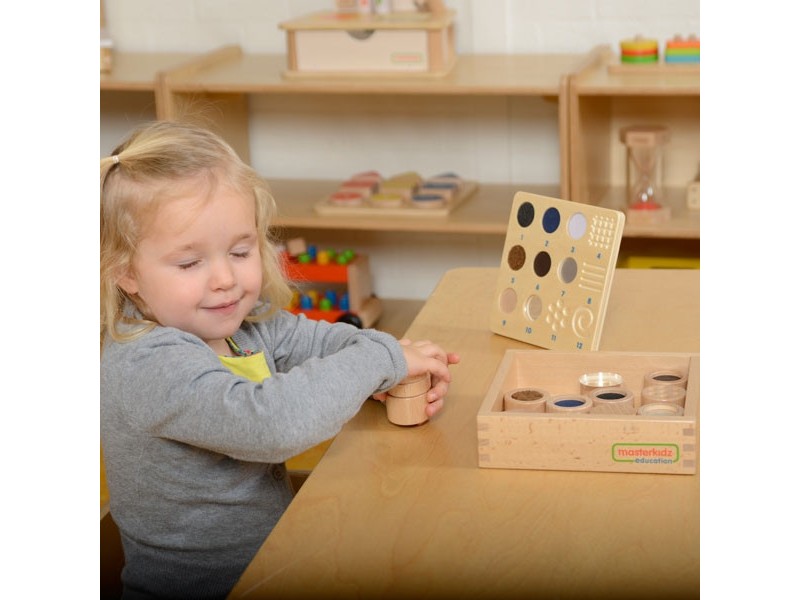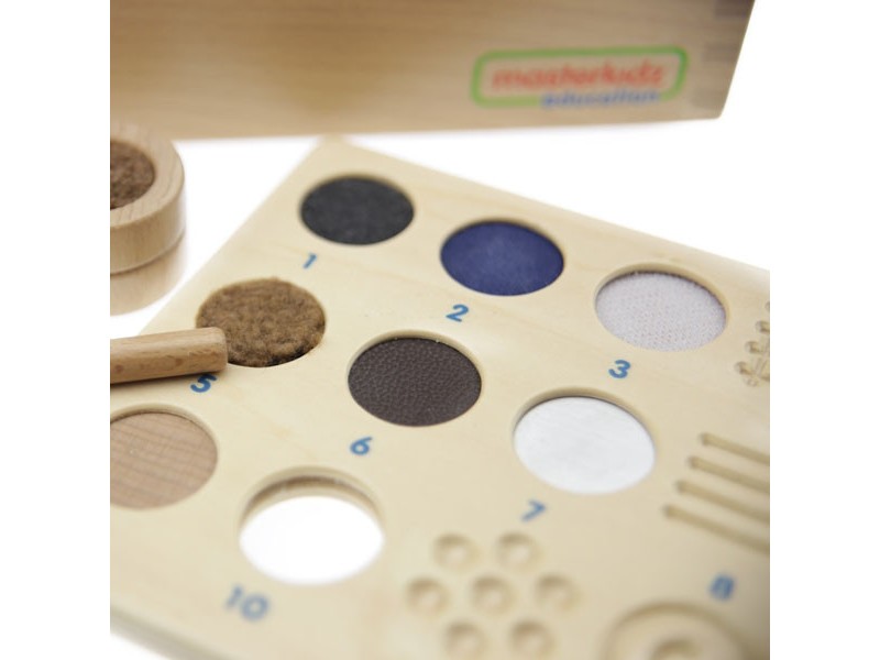 Prekės ženklo „Masterkidz“ žaidimo „Atspėk liečiant“ papildymas yra puikus būdas paįvairinti pramogas ir pakelti lytėjimo pojūčio lavinimą į aukštesnį lygį. Rinkinyje rasite 12 medinių kaladėlių: 7 vaizduojančias skirtingas medžiagų rūšis bei 5 su skirtingomis faktūromis. Vaiko užduotis – atpažinti kaladėlę pasikliaujant tik lytėjimu, todėl žaidimas tampa ne tik įdomus, bet ir itin naudingas vaiko raidai.