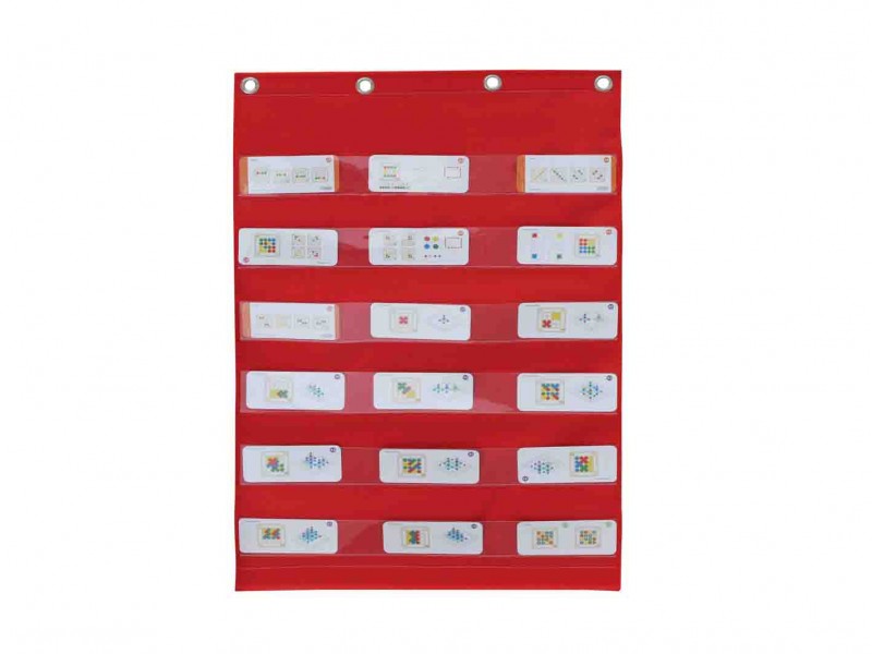 - Šešios eilės skaidrių kišenėlių, kuriose patogu eksponuoti mokomąją medžiagą, pavyzdžiui, korteles su žodžiais sakiniams sudaryti ar mokytis užsienio kalbos.