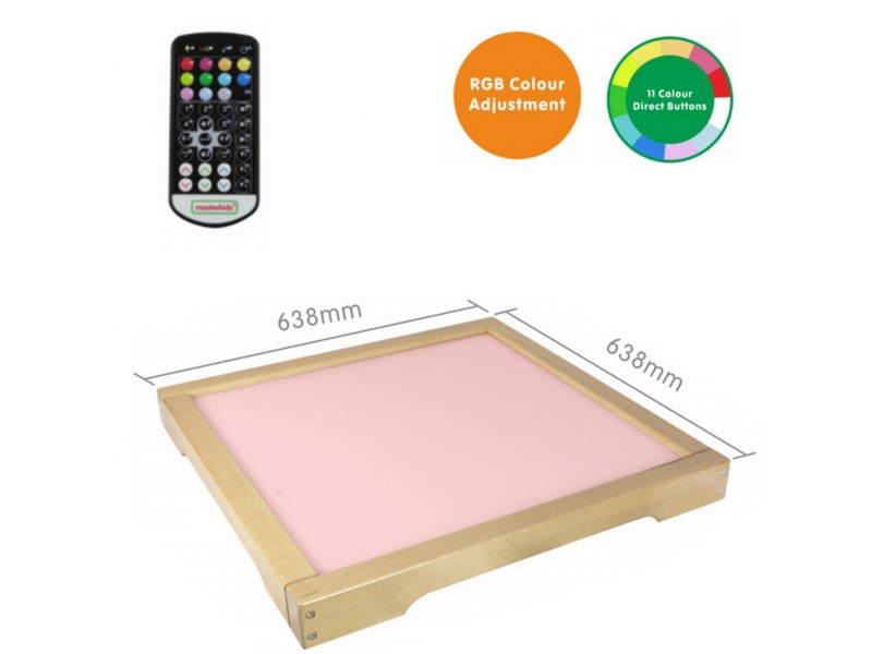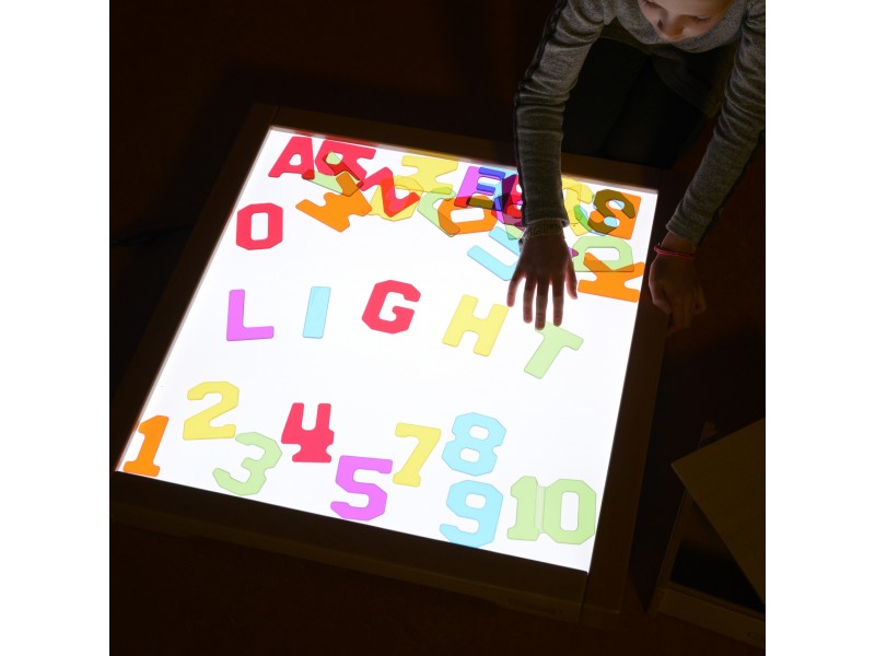 Masterkidz sensorinis LED šviesos stalas – tai tvirta, medinė dėžė su integruotu LED apšvietimu, skleidžiančiu spalvingą šviesą. Dėka pridedamo nuotolinio valdymo pulto, vaikas gali pasirinkti vieną iš 11 iš anksto nustatytų spalvų arba pats maišyti atspalvius, naudodamas pagrindines raudoną, žalią ir mėlyną spalvas. Įrenginys taip pat leidžia nustatyti sklandų spalvų perėjimą ir išsaugoti mėgstamiausias spalvas vėlesniam naudojimui. Šis šviesos stalas atveria duris įvairioms veikloms, skatinančioms kūrybiškumą, pavyzdžiui, spalvų maišymui ar mokymuisi pagal STEM metodiką. Įspūdingi rezultatai gaunami, kai šviesa prasiskverbia pro įvairias medžiagas – lapus, popierių, smėlio padėklą ar permatomą vandenį. Stalas puikiai dera su komplekte esančiais spalvotais priedais, kurie praturtina žaidimo ir mokymosi galimybes, leidžia kurti įvairius raštus ir kompozicijas šviesoje.