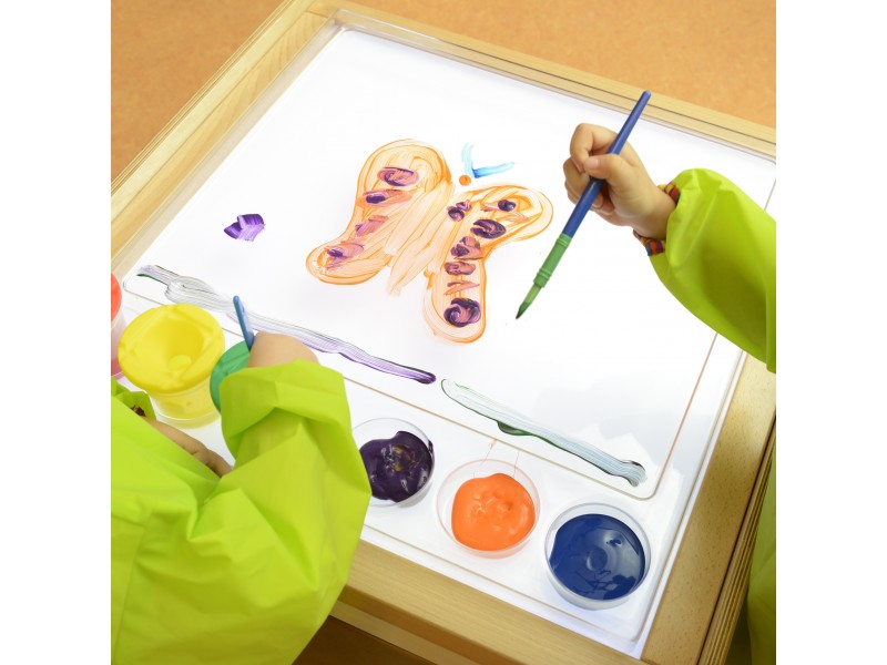 Masterkidz sensorinė LED panelė - tai tvirta, medinė dėžė su integruotu baltos spalvos LED apšvietimu, sukurta žinomo prekės ženklo Masterkidz. Šis išskirtinis šviesos stalas atveria duris į neribotą kūrybiškumo pasaulį, leisdamas vaikams eksperimentuoti su spalvų maišymu ir mokytis per žaidimą pagal STEM principus. Stebėkite, kaip magiškai šviesa persiskverbia pro įvairias medžiagas – lapus, spalvotą popierių, smėlį ar vandenį, sukurdama nepakartojamus efektus. Panelė idealiai dera su komplekte esančiu skaidriu padėklu, kuris, apšviestas iš apačios, dar labiau išryškina mažųjų menininkų kūrinių grožį.