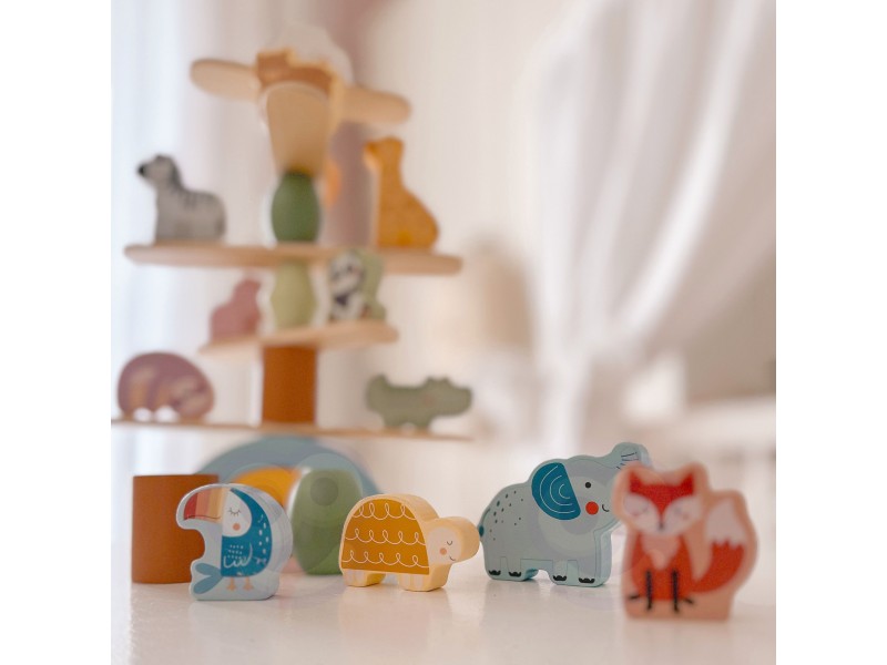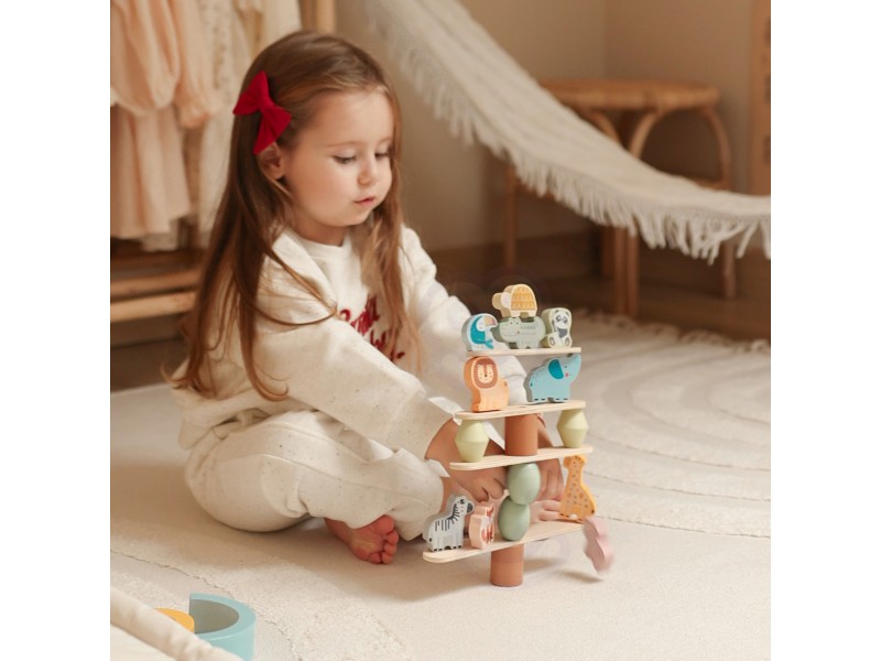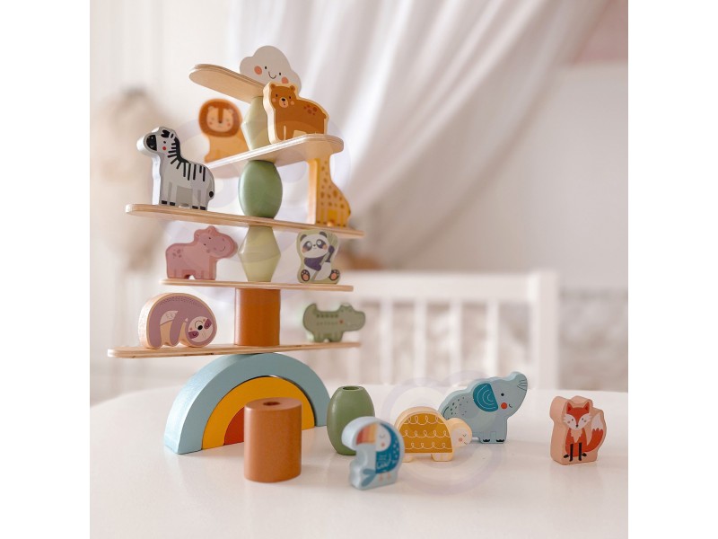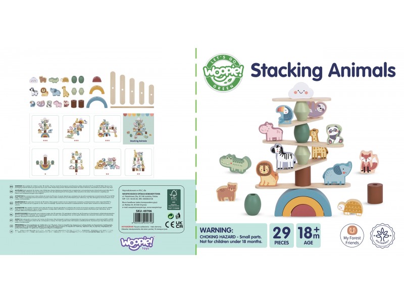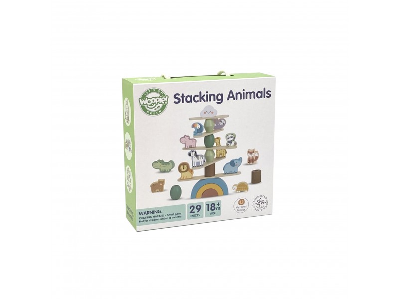 WOOPIE GREEN balansuojantys gyvūnėliai – tai išskirtinė medinė dėlionė, puikiai tinkanti vaikams jau nuo 18 mėnesių amžiaus. Rinkinyje yra 29 elementai: žavūs gyvūnai ir balansavimo priedai, leidžiantys vaikams kurti unikalias konstrukcijas. Šis žaislas skatina vystymąsi ir suteikia daug kūrybinio džiaugsmo – be elektronikos ir triukšmo.