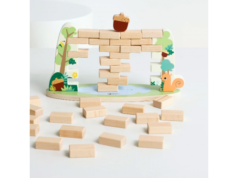 Classic World miklumo žaidimas „Krentanti gilė“ – tai įtraukianti pramoga vaikams, kuri efektyviai lavina miklumą, kantrybę ir loginį mąstymą. Žaidimo esmė primena populiarųjį „Jenga“ bokštą, tačiau čia veiksmas vyksta miško aplinkoje. Žaidėjų užduotis yra atsargiai ištraukti medines kaladėles iš sienos taip, kad viršuje esanti gilė nenukristų. Pralaimi tas žaidėjas, kurio ėjimo metu nukrenta gilė arba sugriūva visa konstrukcija.
