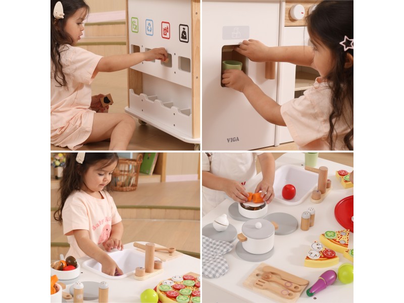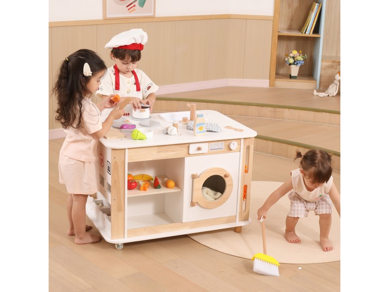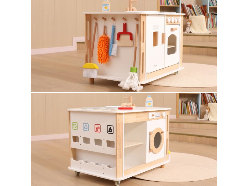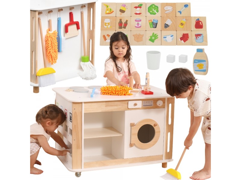 Leiskite savo mažyliui pasinerti į suaugusiųjų pasaulį su šiuo išskirtiniu namų centru! Vaikai galės gaminti maistą, skalbti, tvarkytis ir net mokytis rūšiuoti atliekas, atkartodami realistiškas kasdienes situacijas. Interaktyvūs elementai, tokie kaip ledukų gaminimo aparatas, suteikia žaidimui dar daugiau jaudulio ir tikroviškumo. Salelės tipo konstrukcija ir gausus priedų rinkinys skatina vaikus žaisti kartu, taip lavinant socialinius įgūdžius. Tai tobula dovana vaikams nuo 3 metų, jungianti kasdienio gyvenimo pažinimą su kūrybišku laiko praleidimu!