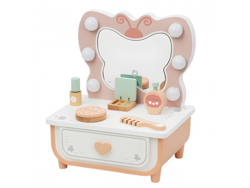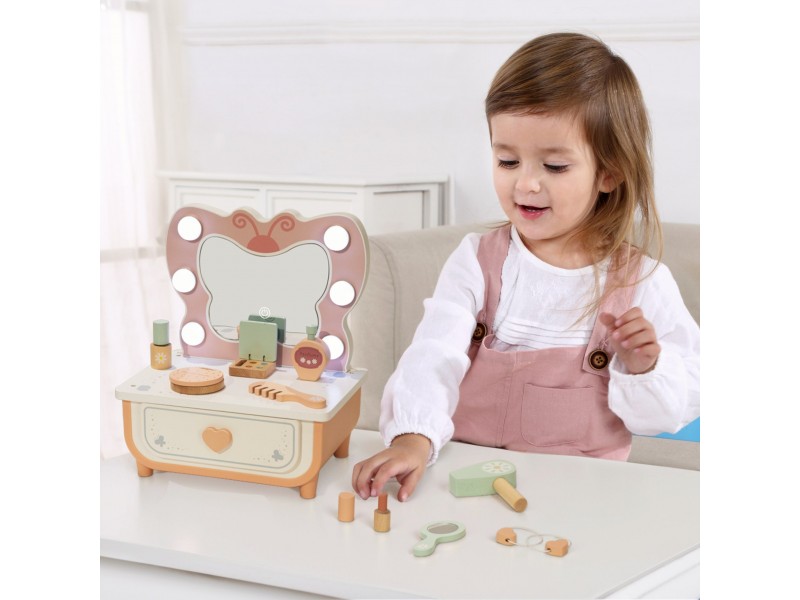 Medinis kosmetinis staliukas | Su LED veidrodžiu ir priedais | Tooky Toy TP528