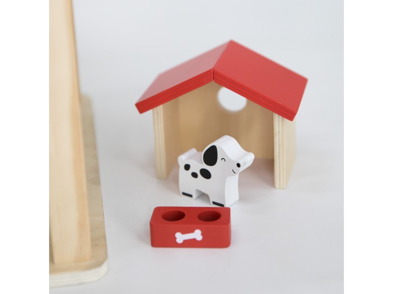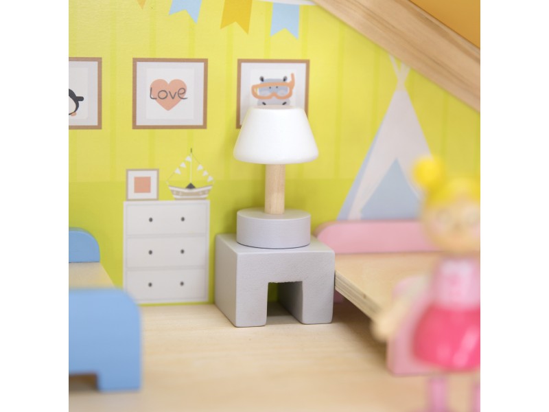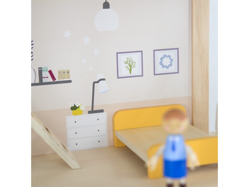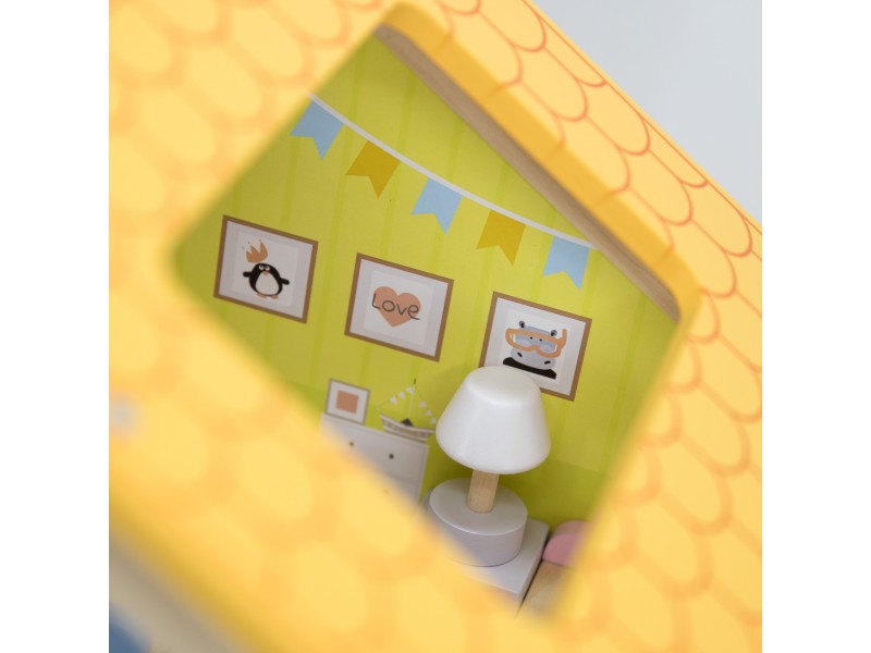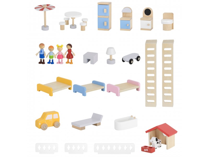 Viga medinis lėlių namelis su lėlytėmis ir priedais