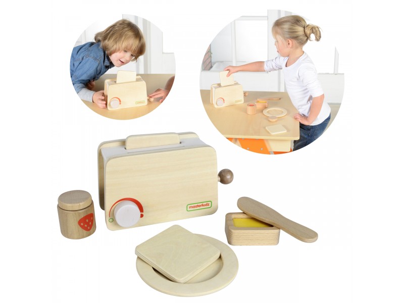 Masterkidz medinis skrudintuvas su priedų rinkiniu – tai nuostabus lavinamasis žaislas, puikiai papildysiantis bet kurią vaikišką virtuvėlę. Skrebučiai – idealūs pusryčiai, kuriuos paruošti greita ir paprasta. Su šiuo mediniu rinkiniu net pats mažiausias vaikas galės pasigaminti gardžių skrebučių. Žaisdamas mažylis mokosi gaminti, o vėliau, prižiūrimas tėvų, galės pritaikyti įgytus įgūdžius ir tikroje virtuvėje. Tai puikus žaislas vaidmenų žaidimams, lavinantis vaizduotę ir socialinius įgūdžius.