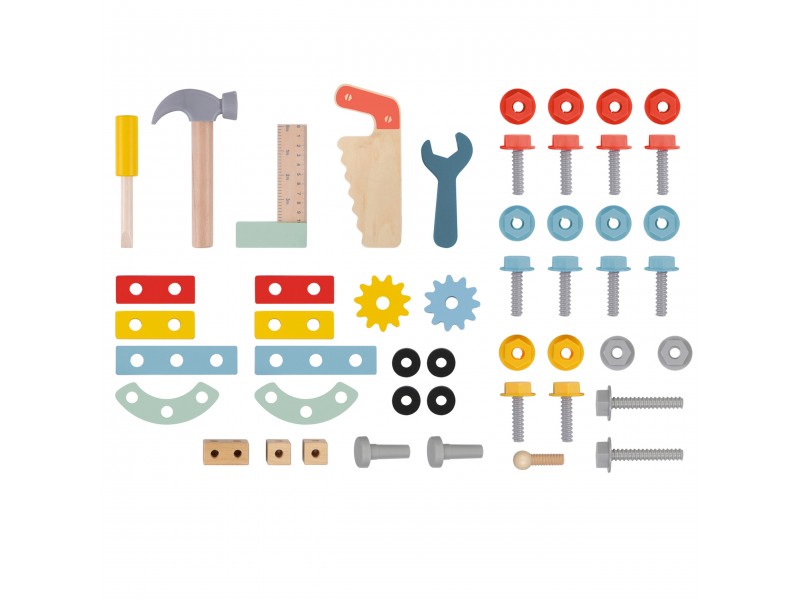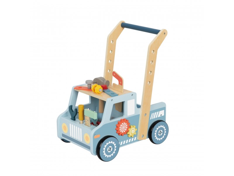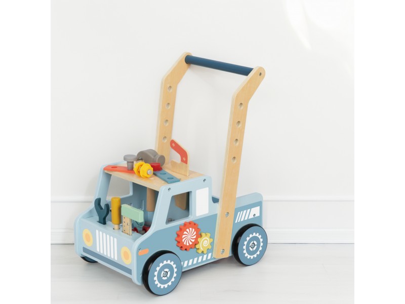 Pirmasis žingsnis ir pirmasis remontas – tai įmanoma su šiuo išskirtiniu Tooky Toy stumduku! Stabilaus stumduko ir pilnaverčių dirbtuvių derinys yra tikras pramogų centras mažajam meistrui. Vaikas ne tik tobulina vaikščiojimo įgūdžius, bet ir pasineria į patrauklų konstravimo pasaulį, kuriame kiekvienas varžtas, kiekviena detalė ir kiekvienas įrankis yra naujas nuotykis. Talpi daiktadėžė transporto priemonės kabinoje leidžia pasiimti visus priedus į kelionę po namus, o tvirta konstrukcija užtikrina saugumą žengiant pirmuosius žingsnius.