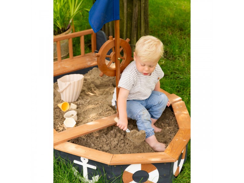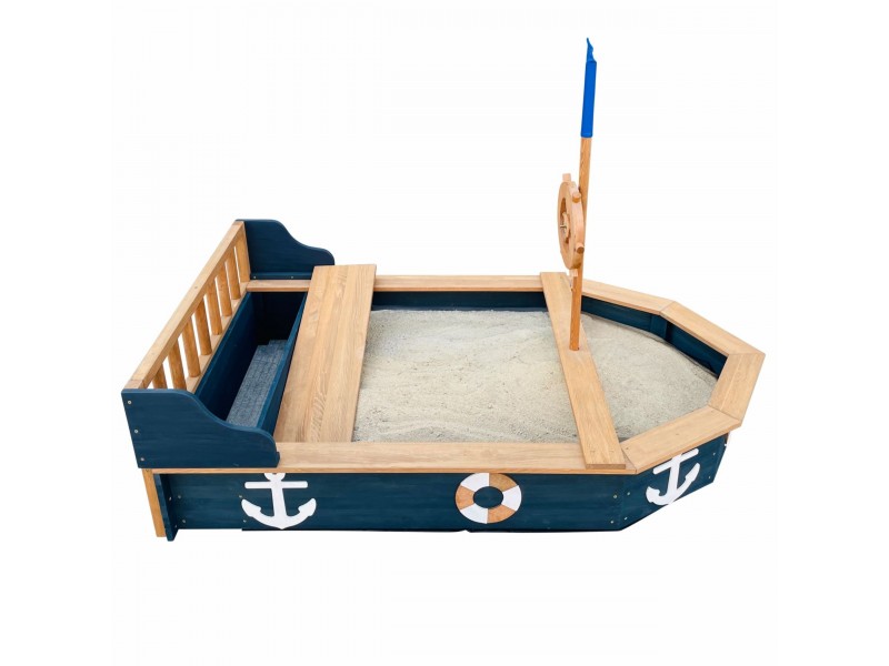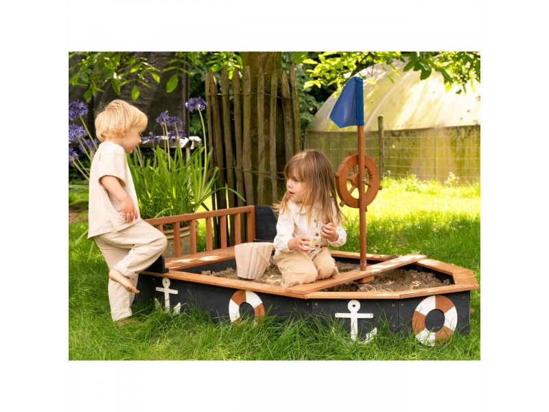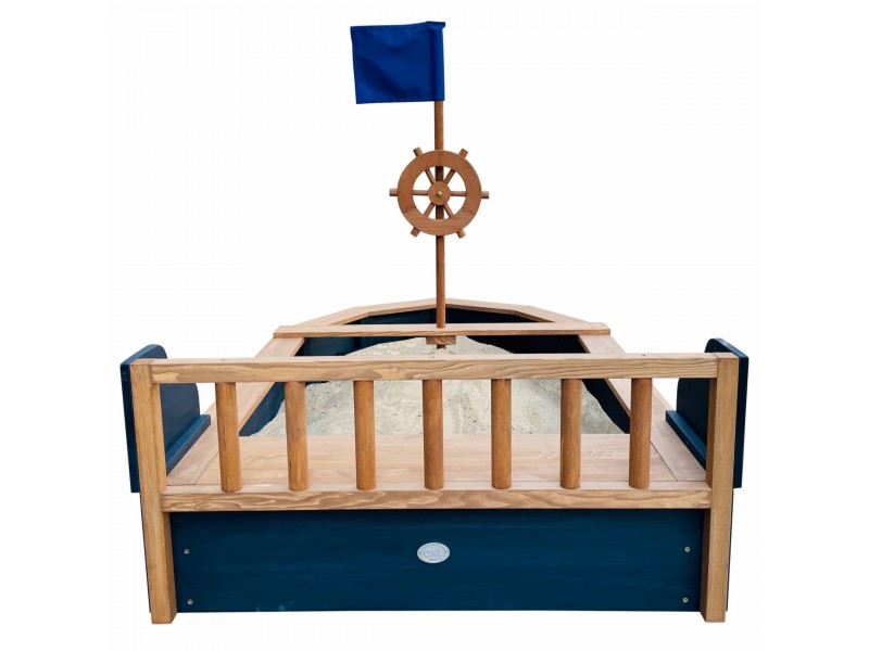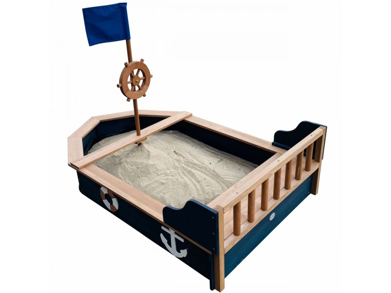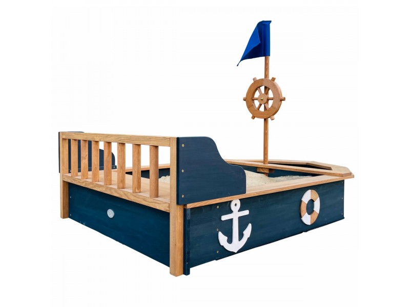 Kiekvienas mažylis gali tapti savo laivo kapitonu! Išskirtinė laivo forma su besisukančiu vairu, vėliava ant stiebo ir dekoratyviniais inkarais daro žaidimą lauke dar labiau jaudinantį. Tvirta medinė konstrukcija, įmontuotos sėdynės ir praktiška žaislų daiktadėžė paverčia šią smėliadėžę idealia vieta kūrybiškiems vaikų užsiėmimams atvirame ore.