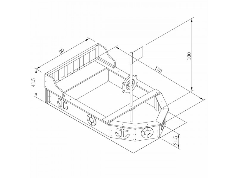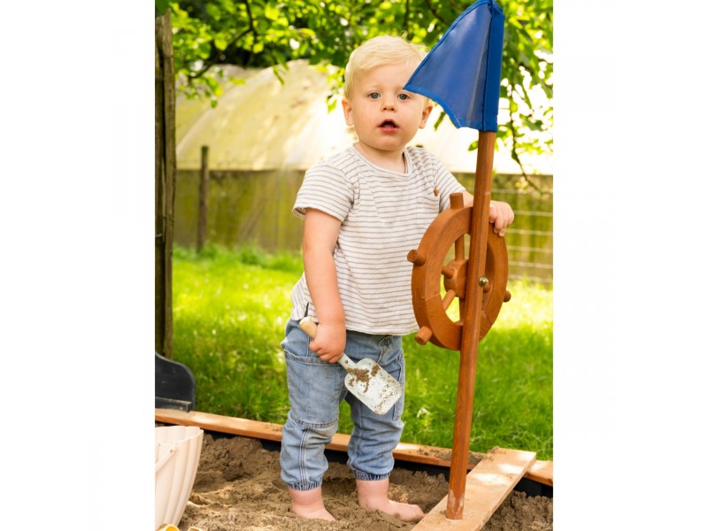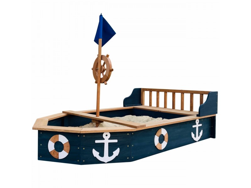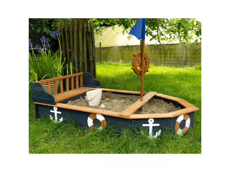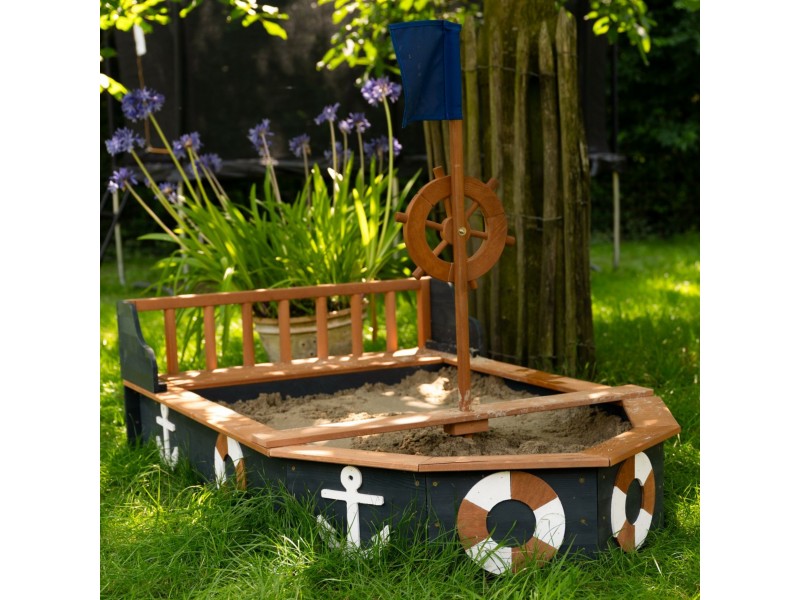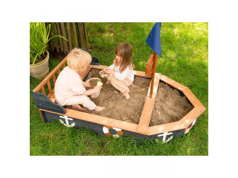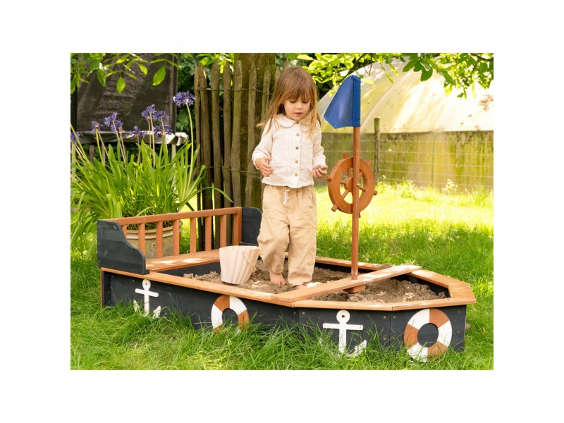 Kiekvienas mažylis gali tapti savo laivo kapitonu! Išskirtinė laivo forma su besisukančiu vairu, vėliava ant stiebo ir dekoratyviniais inkarais daro žaidimą lauke dar labiau jaudinantį. Tvirta medinė konstrukcija, įmontuotos sėdynės ir praktiška žaislų daiktadėžė paverčia šią smėliadėžę idealia vieta kūrybiškiems vaikų užsiėmimams atvirame ore.