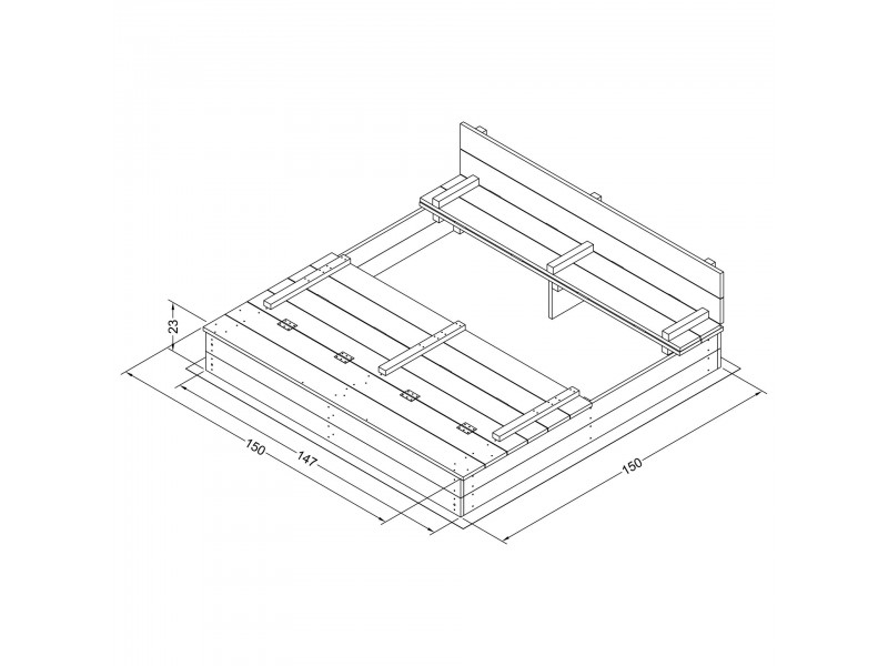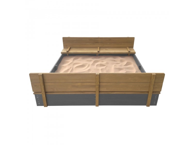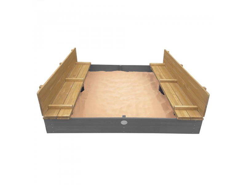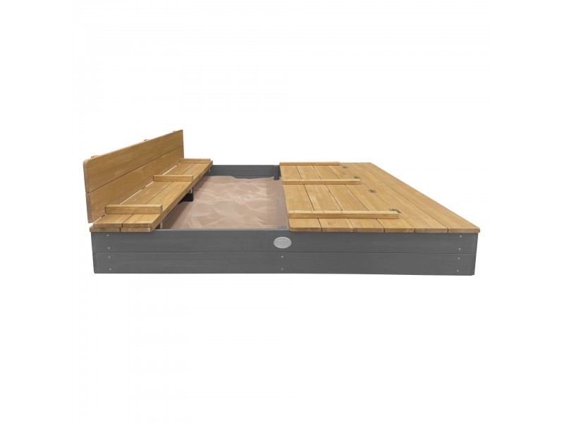 Komplekte yra praktiškas medinis dangtis, kurį lengva atidaryti ir paversti dviem patogiais suoliukais. Taip vaikai gali patogiai atsisėsti žaisdami. Baigus žaisti, dangtį galima tiesiog uždaryti – taip smėlis išliks sausas, švarus ir apsaugotas nuo gyvūnų bei nešvarumų.