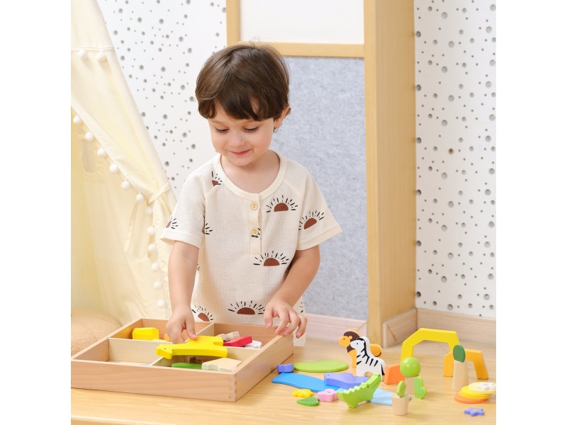 - Atviro tipo (angl. "open-ended") žaislas, idealiai tinkantis Montessori metodikai.