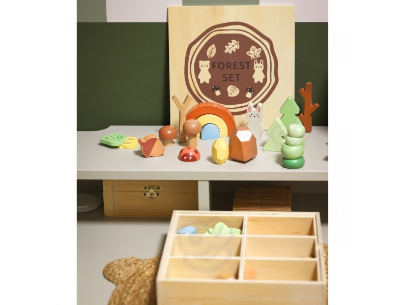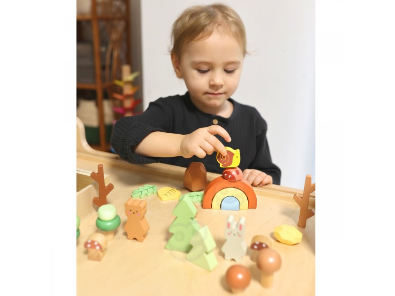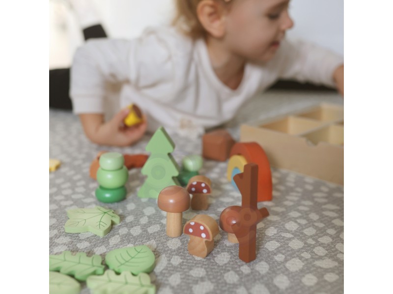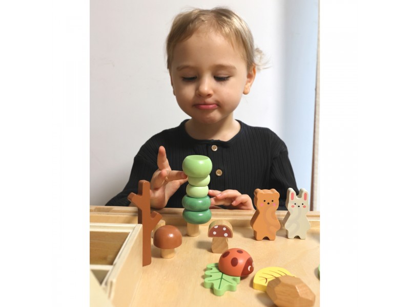 Tooky Toy medinis miško rinkinys sukurtas siekiant suteikti vaikams nepamirštamų kūrybinių žaidimų akimirkų. Dėžutėje rasite įvairius miško elementus, kurie leidžia rūšiuoti, krauti į krūvas bei statyti, taip sukuriant unikalią ir nepakartojamą miško aplinką.