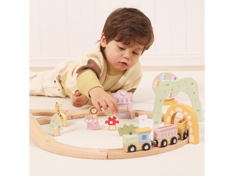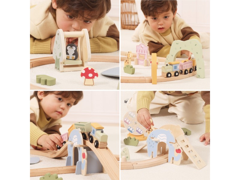 Kviečiame į kūrybiškų žaidimų pasaulį su prekės ženklo Viga medine traukinių trasa, kurioje jūsų mažylis sukurs savo nuosavą, gyvybės kupiną pramogų parką! Šis žavus medinis geležinkelis nuves vaiką į jaudinančią kelionę per tiltus ir paslaptingus tunelius, o visa tai lydės mieli gyvūnėliai. Tai ne tik puiki pramoga, bet ir lavinamasis konstravimo iššūkis, leidžiantis mažiesiems inžinieriams projektuoti savo maršrutus ir patirti begalę nuotykių. Dėl saugių, magnetinių traukinukų ir net 62 elementų, kiekviena diena tampa nauja proga džiaugsmingai atrasti ir mokytis judant. Padovanokite savo vaikui erdvę tobulėti ir stebėkite, kaip dėliojant bėgius gerėja jo koordinacija bei auga išradingumas!