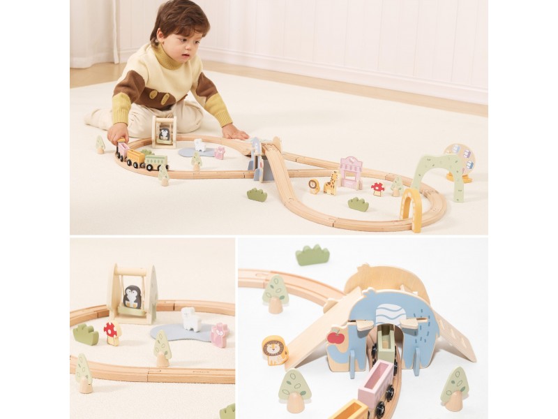 Viga medinė traukinių trasa - pramogų parkas su 62 elementais