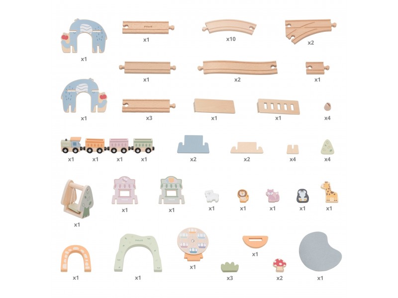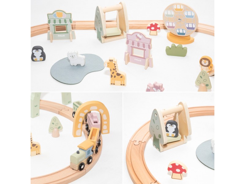 - Gyvūnų figūrėlės: mieli keleiviai ir parko gyventojai (liūtas, pingvinas, žirafa).