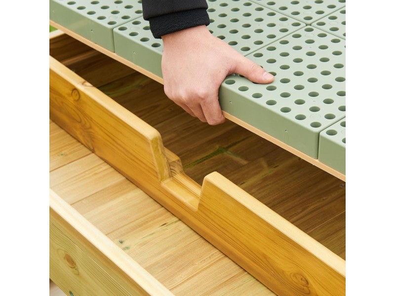 • Pagamintas iš vandeniui atsparios, slėgiu impregnuotos medienos.