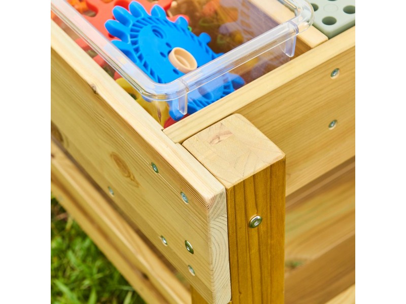 Tvirtas medinis lavinamasis STEM stalas, sukurtas kūrybiškiems žaidimams lauke iš prekės ženklo Masterkidz, sujungia mokymąsi su judėjimu, eksperimentavimu ir puikia pramoga vaikams nuo 3 metų. Dėl perforuoto viršutinio paviršiaus ir praktiškos apatinės lentynos, šis stalas suteikia beveik neribotas konstravimo ir tyrinėjimo galimybes. Pagamintas iš impregnuotos medienos, jis yra atsparus oro sąlygoms, pelėsiui, drėgmei ir UV spinduliams. Tai idealus žaidimų centras, kuris ugdo smalsumą pasauliui ir skatina vaikus kartu atrasti mokslą.