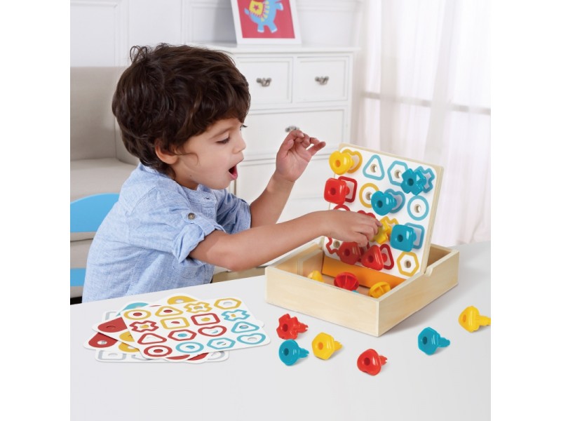 Sukurtas specialiai vaikams atradimų etape, šis žaislas pasižymi įvairiais žaidimo būdais. Rinkinyje yra lengvai mažoms rankytėms suimamos detalės, o briaunos yra lygios ir švelnios, kas leidžia vaikams saugiai žaisti. Detalės yra įvairių geometrinių formų, sodrių spalvų. Tai puikus daugiafunkcis edukacinis žaislas, kurio pagalba vaikas gali išmokti atpažinti formas ir spalvas. Be to, žaidimą lydi smulkiosios motorikos ir susikaupimo treniruotė. Žaislas gali padėti mažiems vaikams lavinti akių-rankų koordinaciją bei ugdyti loginį mąstymą ir vaizduotę. Medinė dėžutė su žaidimo funkcija kartu yra ir daiktadėžė – joje galima laikyti visas dalis be baimės jas pamesti.