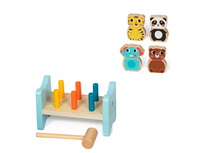 Tai klasikinis žaislas, kuris pritraukia mažylių dėmesį. Tvirta medinė konstrukcija, šeši spalvoti kaiščiai ir plaktukas skatina vaikus įkalti visus kaiščius į skyles, o tada apversti žaislą ir kartoti procesą daugybę kartų. Šis žaislas padeda atpažinti spalvas, lavina akių-rankų koordinaciją, motorinius gebėjimus ir skatina kūrybišką žaidimą. Žaidimas prisideda prie motorinių įgūdžių vystymo, loginio mąstymo bei spalvų mokymosi. Žaisdamas su kalimo žaidimu, vaikas įgis rankų judesių tikslumo, kuris ateityje palengvins mokymąsi rašyti.