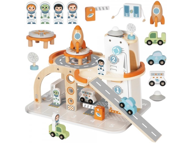 Tooky Toy medinė kosminė stotis - garažas su priedais