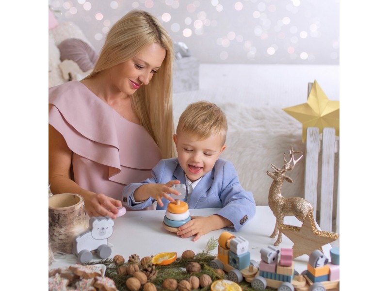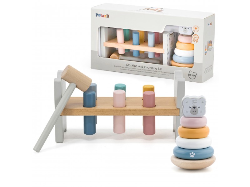 Viga PolarB lavinamasis rinkinys: medinė piramidė ir kalimo žaidimas