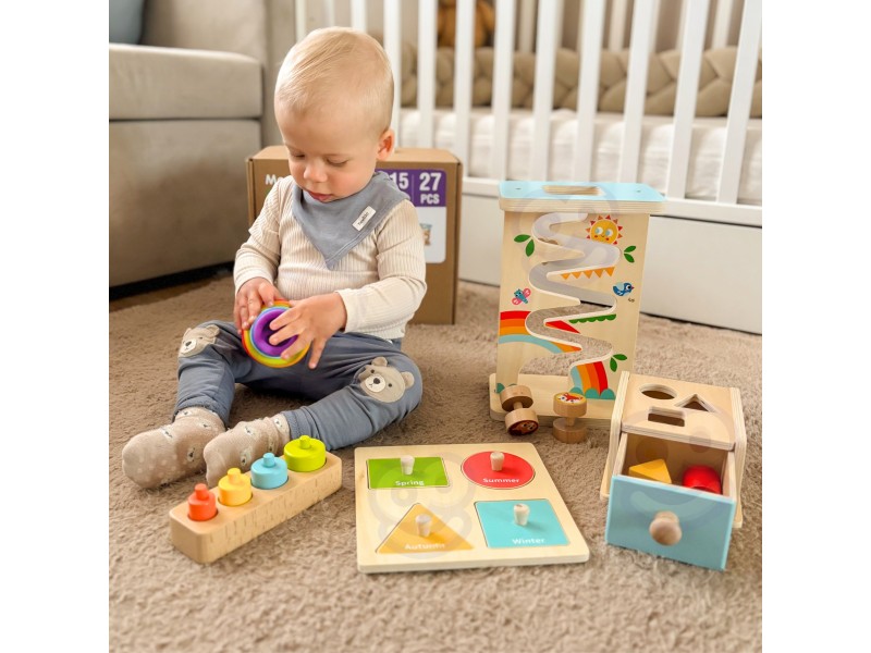 - Net 6 Montessori žaislai vienoje pakuotėje, skatinantys savarankišką tyrinėjimą.