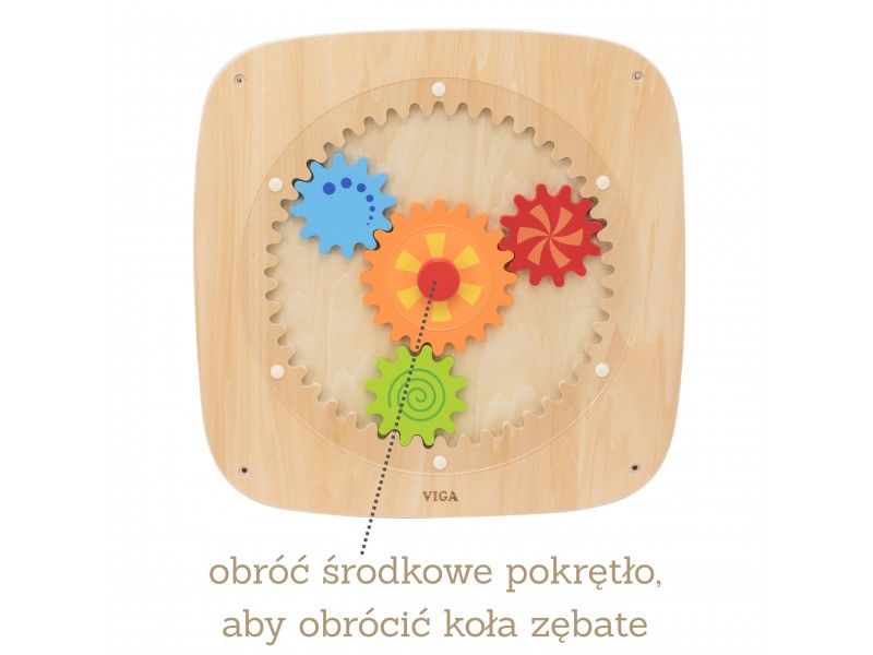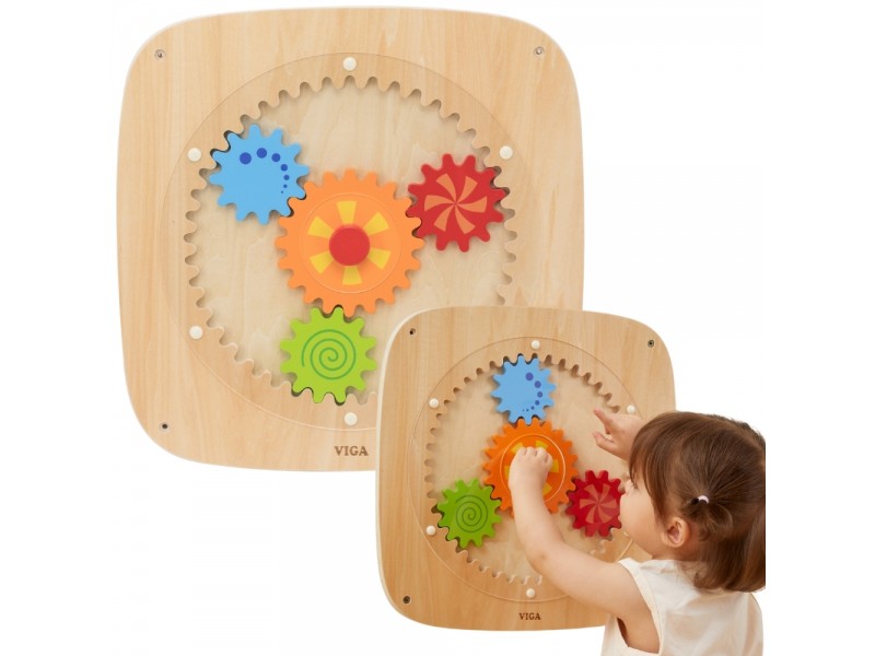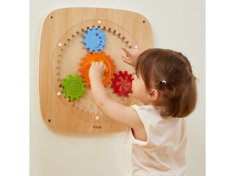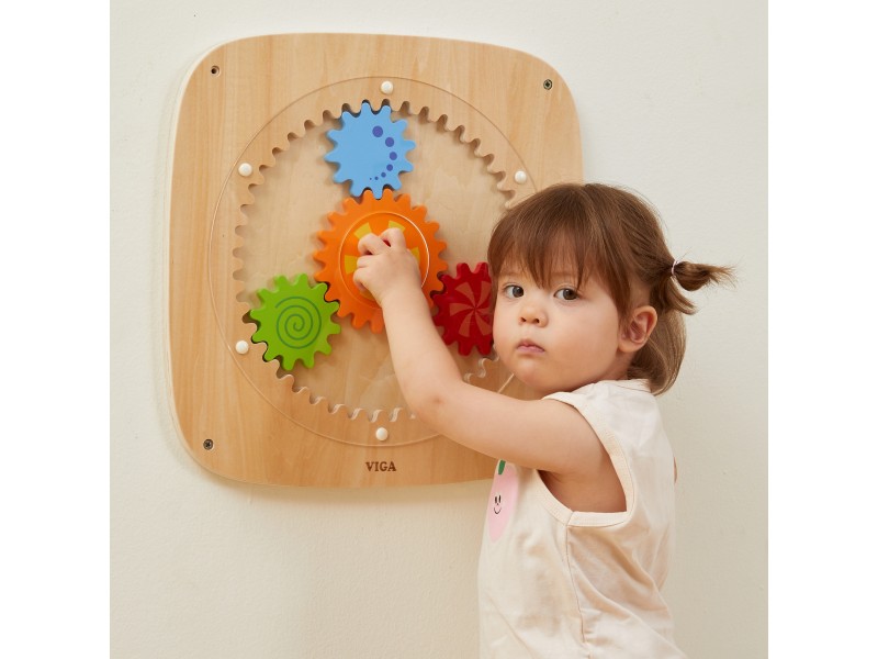 Atraskite nuostabų lavinamąjį žaislą, kuris skatina jūsų vaiko rankų miklumą ir loginį mąstymą! Ši VIGA sieninė lenta su spalvotais krumpliaračiais yra ne tik smagi pramoga, bet ir puiki mokymosi priemonė. Vaikas, sukdamas vieną rankenėlę, išjudina visus krumpliaračius vienu metu. Šis procesas padeda mažyliui suprasti jėgos ir judėjimo principus bei priežasties ir pasekmės ryšį. Dėl skirtingų raštų ant ratukų, jiems sukantis, sukuriami žavūs vizualiniai efektai. Žaislas pagamintas iš aukštos kokybės medienos, todėl yra ilgaamžis ir saugus. Tai puikus pasirinkimas norint sukurti aktyvumo sienelę vaiko kambaryje, darželyje ar lopšelyje. Idealiai tinka smalsiems pasaulio atradėjams!