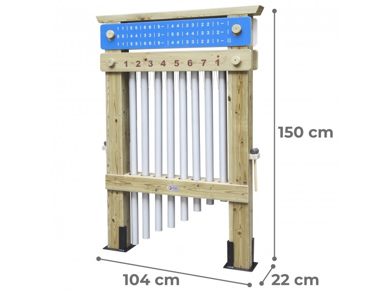 Su šiais nuostabiais dideliais lauko varpeliais iš „CLASSIC WORLD“ EDU serijos, jūsų sodas, žaidimų aikštelė ar kita lauko erdvė prisipildys nuostabių melodijų! Šis unikalus muzikinis instrumentas yra puikus būdas bet kokio amžiaus vaikams atrasti harmoniją ir ritmą. Kuriant savo melodijas skatinama vaiko saviraiška, ugdomas drąsumas ir pasitikėjimas savimi. Vienoje instrumento pusėje pateikiami melodijų pavyzdžiai, kurie įkvėps mažuosius kompozitorius kurti savo unikalius muzikinius šedevrus. Pagaminta iš aukštos kokybės, tvarios medienos, kuri yra atspari įvairioms oro sąlygoms.