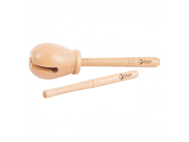 Pripažinto prekės ženklo "Classic World" medinis muzikinis instrumentas "Woodblock" yra išskirtinis perkusinis instrumentas, kuris supažindins jūsų vaiką su žaviu muzikos pasauliu. Šis klasikinis instrumentas, dar žinomas kaip akustinė dėžutė, pasižymi švariu ir maloniu skambesiu, kuris išgaunamas lazdele smogiant į specialiai profiliuotą galvutę su rezonansine anga. Pagamintas iš natūralios medienos, šis žaislas yra ideali priemonė ritmo mokymuisi, muzikinio jautrumo ugdymui bei pirmiesiems žaidimams su garsais darželyje ar namuose.