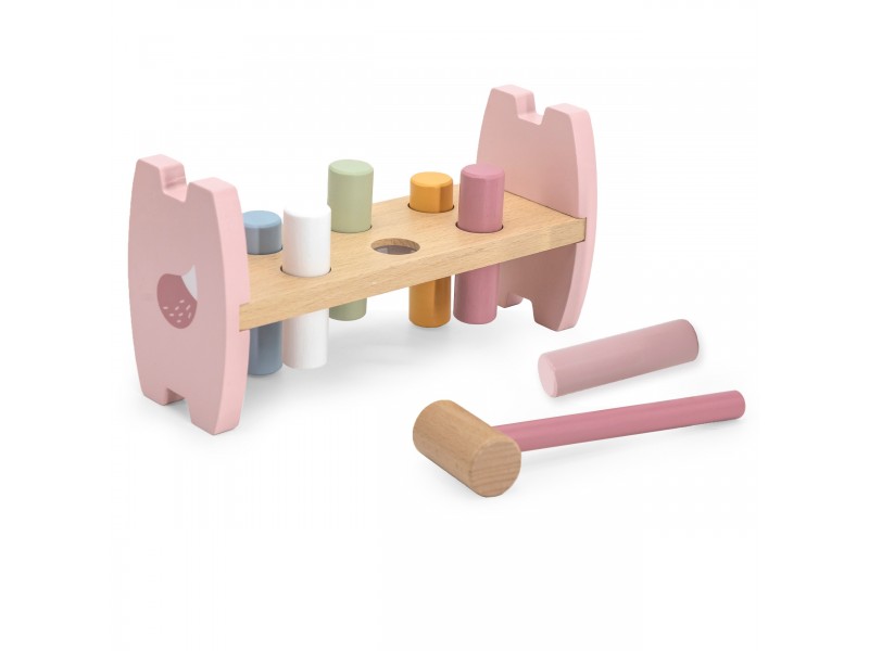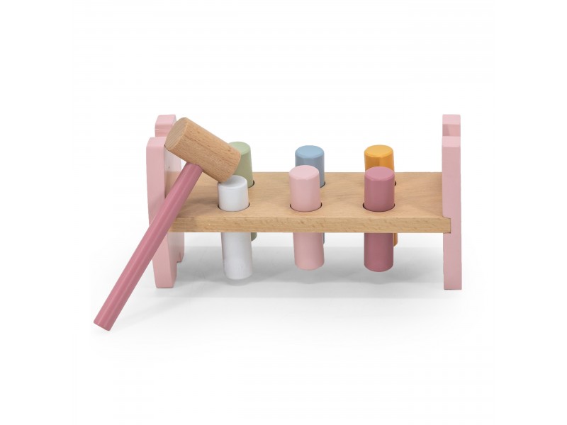 \nSpalvingas medinis kalimo žaidimas iš Viga – tai žaislas, kurį pamils kiekvienas vaikas. Švelnios pastelinės spalvos ir patogus laikyti plaktukas skatina mažylius įsitraukti į smagų žaidimą. Žaisdamas vaikas lavina rankų judesių tikslumą, miklumą ir vis geriau atpažįsta spalvas. Ateityje šis įgytas judesių tikslumas ir smulkioji motorika labai palengvins vaikui mokymąsi rašyti.