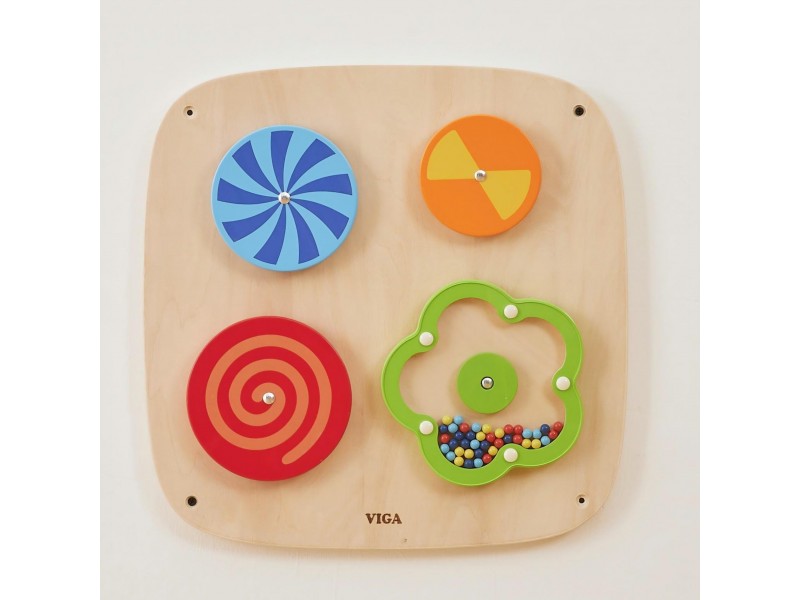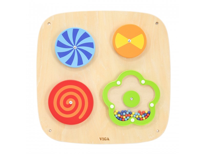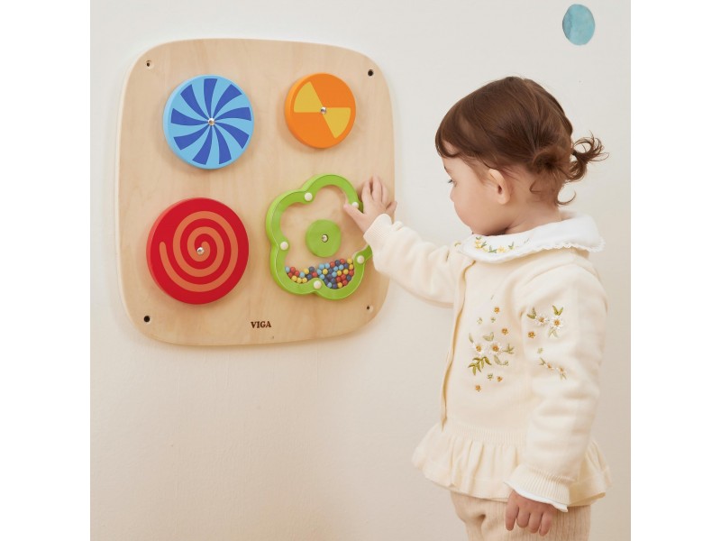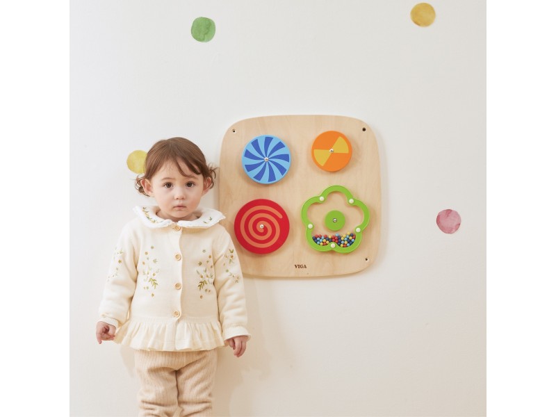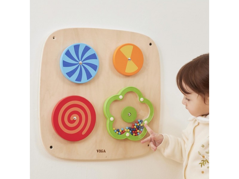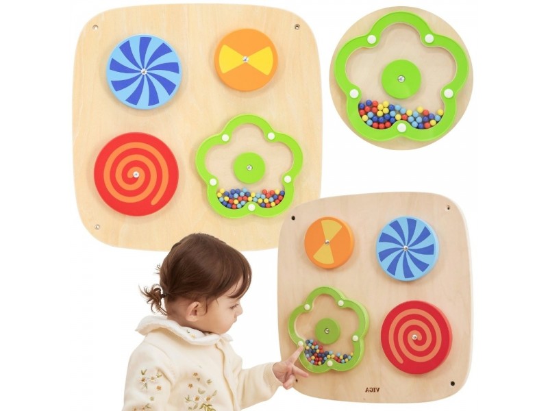 Perkelkite savo vaiką į žavų optinių iliuzijų pasaulį su šiuo išskirtiniu VIGA prekės ženklo sieniniu skydu! Keturi besisukantys diskai hipnotizuoja kintančiais raštais, o gėlytė, užpildyta mediniais karoliukais, kiekvieną rankytės judesį apdovanoja maloniu, barškančiu garsu. Tai idealus nerūpestingo žaidimo ir intensyvios vaiko akių koordinacijos bei vizualinio suvokimo lavinimo derinys. Dėl išmanaus tvirtinimo prie sienos, sutaupysite vietos ir palaikysite tvarką kambaryje, kartu sukurdami profesionalų sensorinį kampelį, prie kurio vaikas visada turės prieigą. Tvirtas, saugus ir ekologiškas dizainas garantuoja, kad šis lavinamasis nuotykis tęsis ilgus metus.