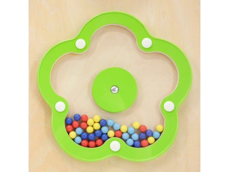 - Diskas „Gėlytė“: permatomas gėlės formos elementas, pripildytas spalvotų karoliukų, kurie barška sukant.