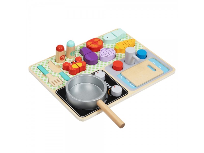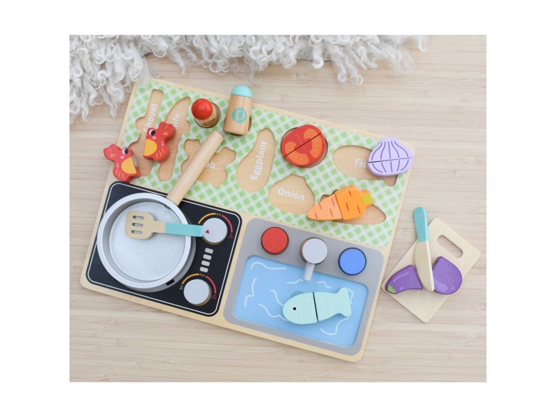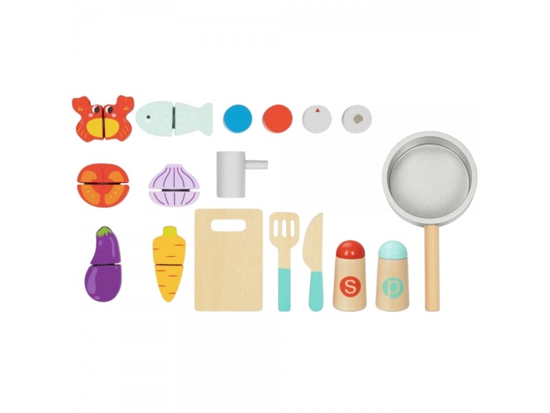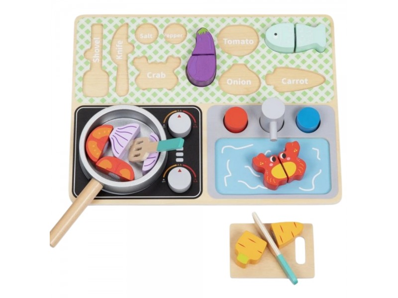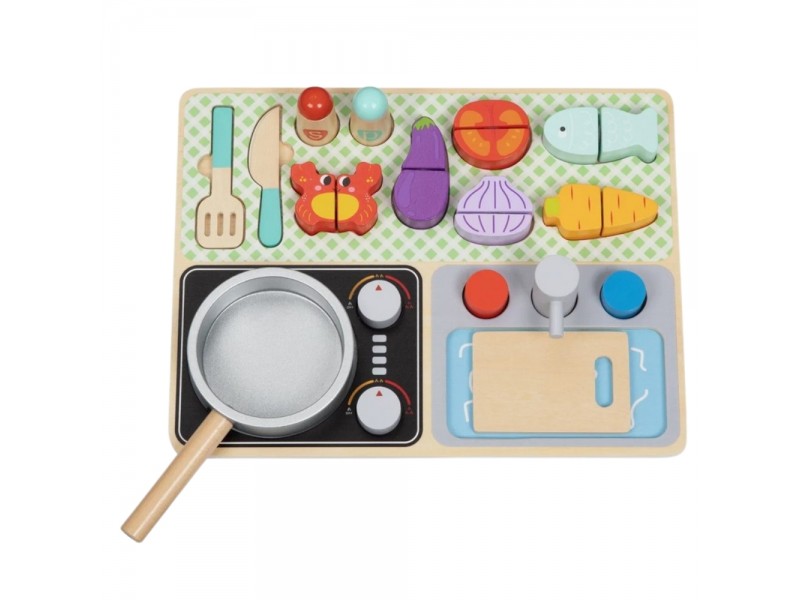 Tooky Toy medinė virtuvėlė su priedais - mažojo virėjo rinkinys