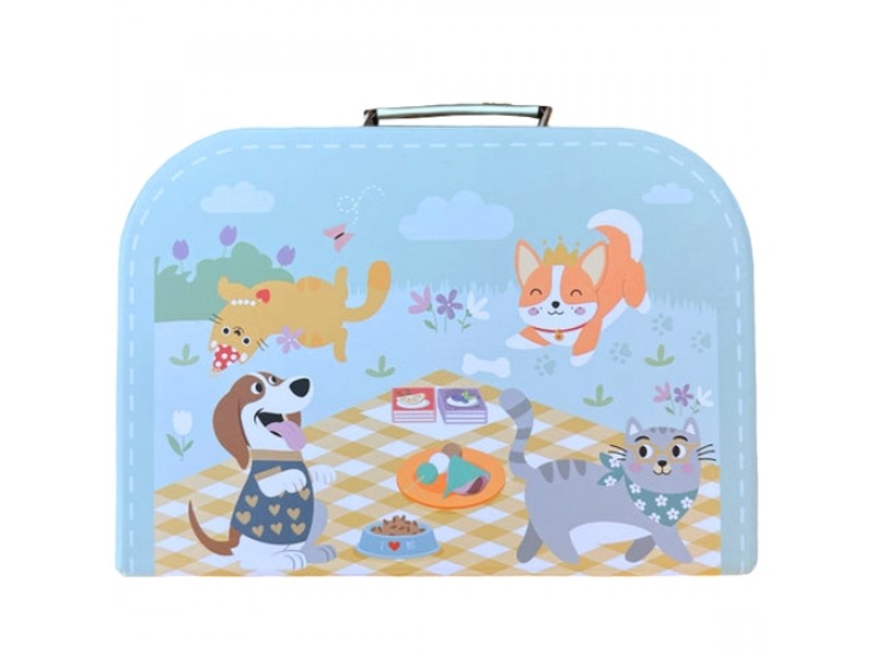 - Rinkinys supakuotas į dailų lagaminą su rankena ir gyvūnėlių motyvais – patogu nešioti ir tvarkingai laikyti.