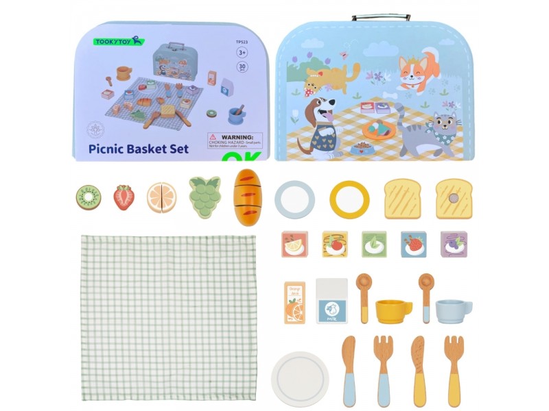 Medinis pikniko rinkinys | lagamine su pjaustomais vaisiais | Tooky Toy TP523