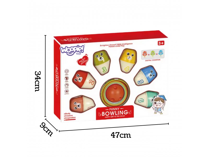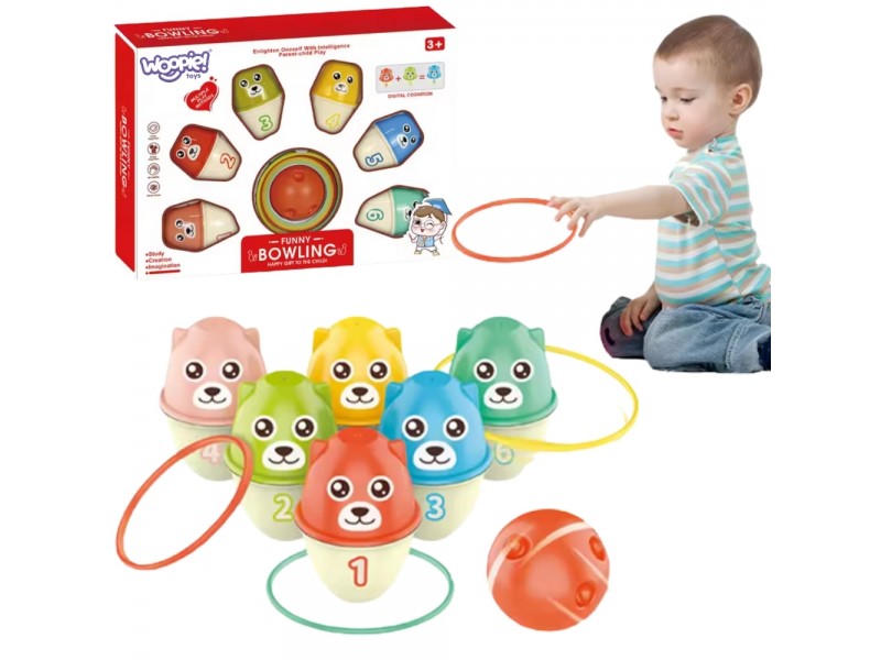 Pristatome inovatyvų ir lavinamąjį žaislą iš „Woopie“ – „Spalvoti meškiukai“ boulingo rinkinį, kuris sujungia aktyvias pramogas su pažintine veikla. Šį universalų 3-in-1 rinkinį sudaro mieli, spalvoti meškiukai su skaičiais, atliekantys kėglių vaidmenį, kamuoliukas jiems numušti ir spalvoti žiedai mėtymo žaidimams. Tai suteikia vaikui daugybę žaidimo variantų. Kiekvienas meškiukas yra skirtingos spalvos ir pažymėtas unikaliu skaičiumi, todėl mažylis žaisdamas natūraliai mokosi atpažinti spalvas ir skaičius. Mėtydamas kamuoliuką ar žiedus, vaikas lavina rankų ir akių koordinaciją, judesių tikslumą bei strateginį mąstymą. Dėl patrauklios formos ir įvairių funkcijų rinkinys puikiai tinka tiek savarankiškiems žaidimams, tiek smagiam laiko praleidimui su tėvais ar bendraamžiais. Meškiukus taip pat galima statyti vieną ant kito kaip bokštą, lavinant smulkiąją motoriką. Tai puiki dovana, garantuojanti ne tik šypseną, bet ir aktyvų pažintinių, manualinių bei socialinių gebėjimų vystymąsi. Idealiai tinka žaisti namuose, darželyje ar kelionėse.