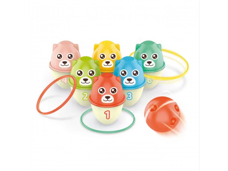 - 6 meškiukai-kėgliai su skaičiais nuo 1 iki 6.
